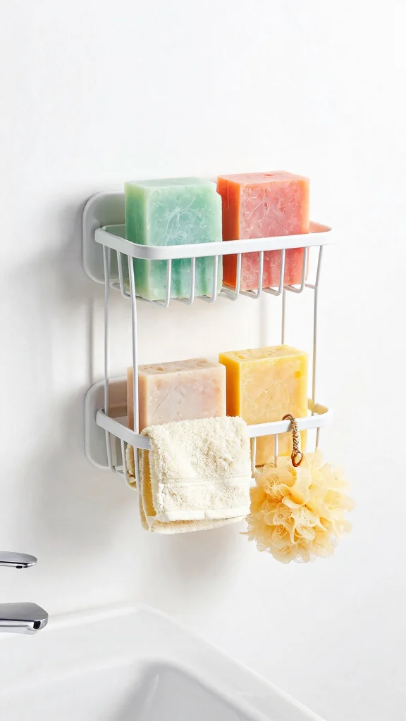 For a modern look, opt for a sleek metal caddy. A plastic option offers moisture resistance, while hooks can provide additional storage for brushes or loofahs.