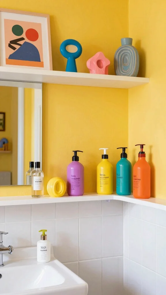 Finally, let your personality shine through with fun and funky shelf decor! Use quirky items or vibrant accessories to infuse energy into your bathroom shelves. Artistic sculptures, bold artwork, or playful elements can reflect your unique style. Mixing colors, shapes, and materials leads to a distinctive arrangement that’s both functional and visually appealing.