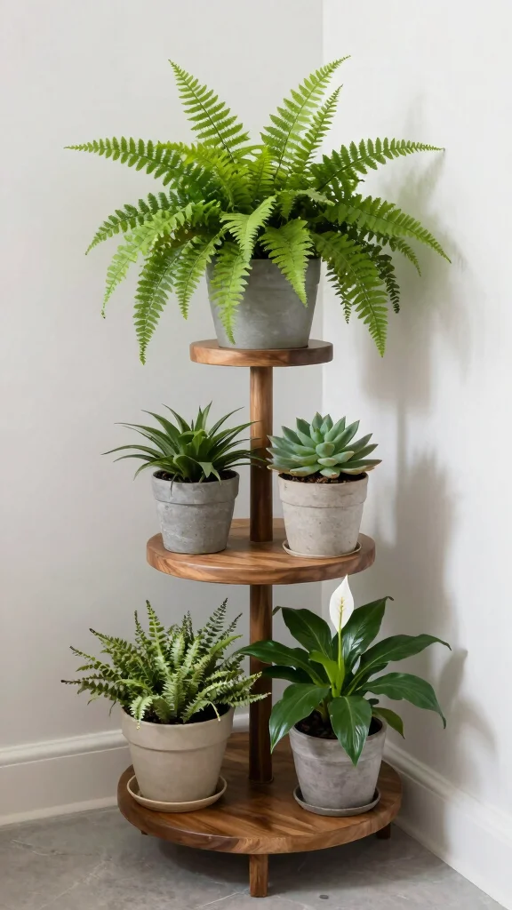 A tiered plant stand is not just a functional piece; it brings life and style into your bathroom decor.