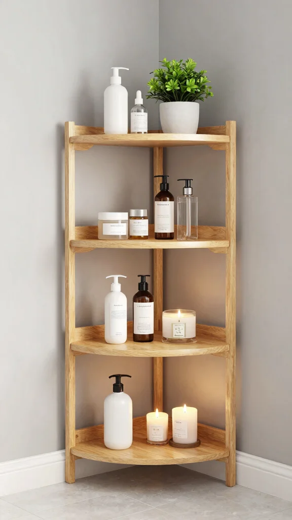 Maximize those often neglected corner spaces with a stylish corner shelf unit. This clever design fits snugly into your bathroom’s corners, turning overlooked areas into functional storage. A tiered unit can hold everything from toiletries to decorative items while maintaining a compact footprint. Choose a style that complements your decor, whether it’s modern, rustic, or vintage.