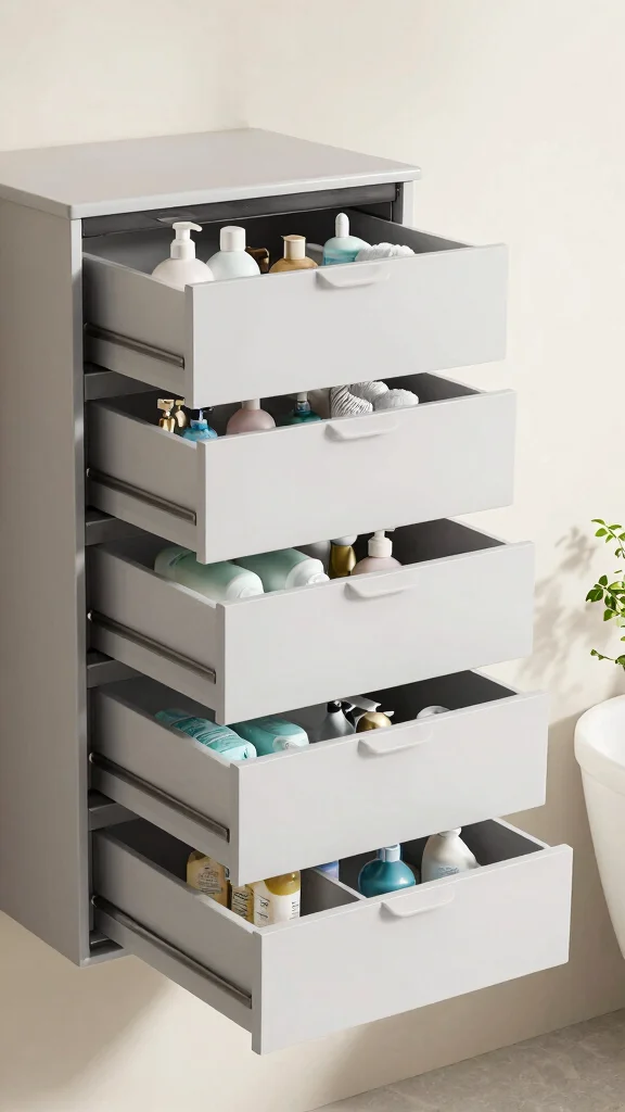For those who prefer a tidy appearance, drawer shelving units are a fantastic solution. These versatile units can fit beneath the sink or alongside your vanity, providing ample space for toiletries, towels, and cleaning supplies. Their sleek design keeps everything hidden, ensuring your bathroom maintains a clean look. Choose a unit with various drawer sizes to accommodate different items.