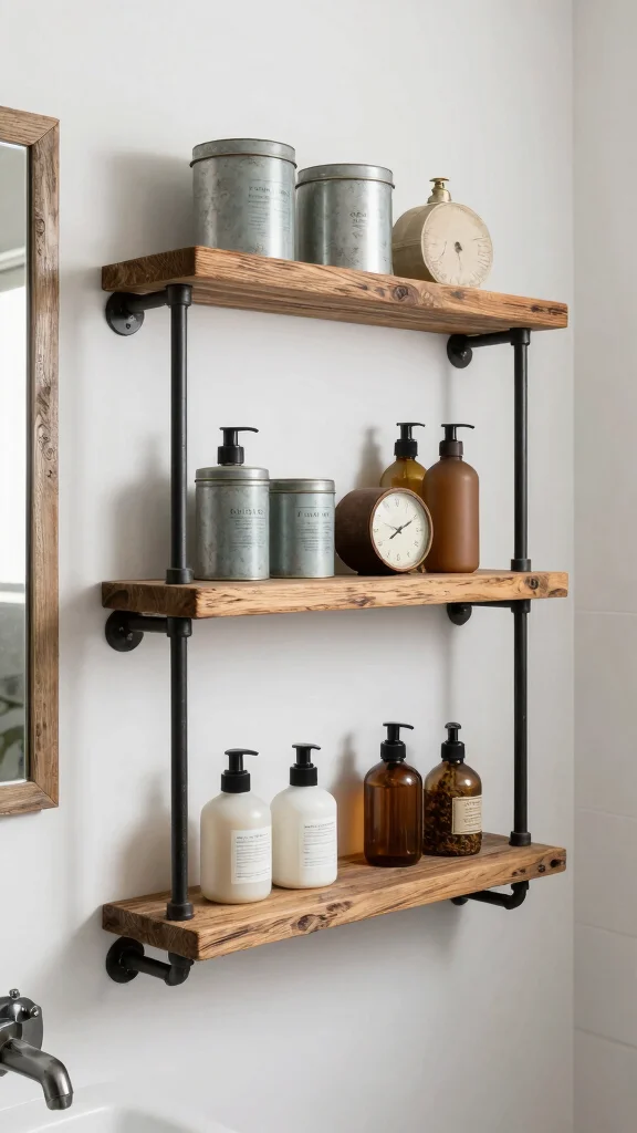 For those seeking a bolder statement, industrial pipe shelves bring a striking contrast to traditional bathroom elements. The combination of rustic wood and sturdy metal piping creates a unique visual appeal, perfect for a modern farmhouse vibe. Imagine the raw beauty of these shelves holding your favorite bathroom accessories or decorative pieces, adding an edgy touch to an otherwise soft space.