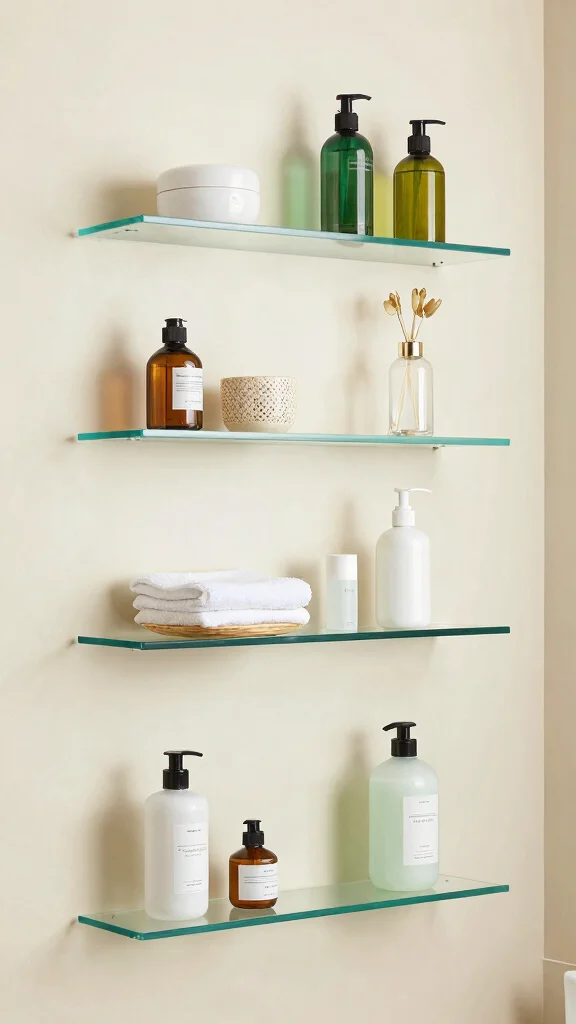 Multi-tiered glass shelves are ideal for maximizing vertical space in your bathroom, allowing you to showcase various items elegantly.