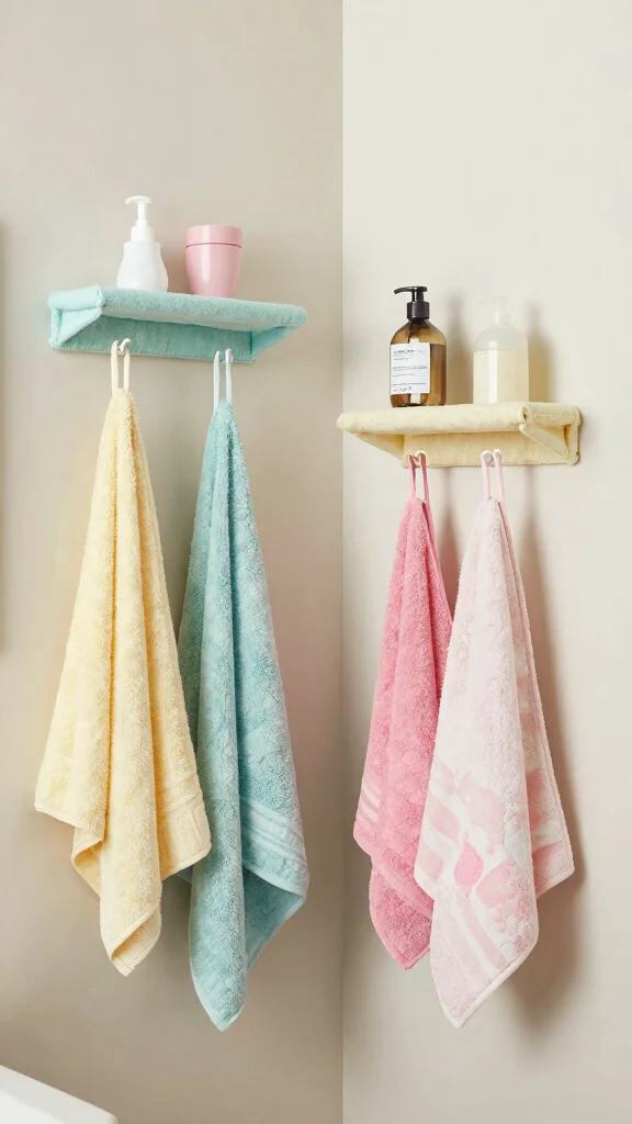 For a softer storage solution, consider fabric-hanging shelves. These lightweight, stylish options can be hung from hooks, offering a unique way to store towels or toiletries. Choose fabrics in various patterns and colors to express your decor style while keeping the space organized.
