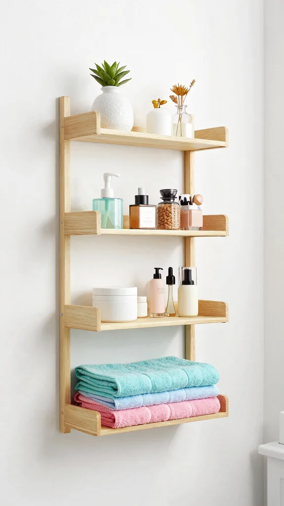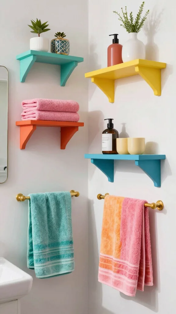 Incorporate a mix of colors for a playful effect, and use the shelves to highlight your favorite decor items. Ensuring a cohesive color palette with your existing bathroom colors will tie everything together beautifully.