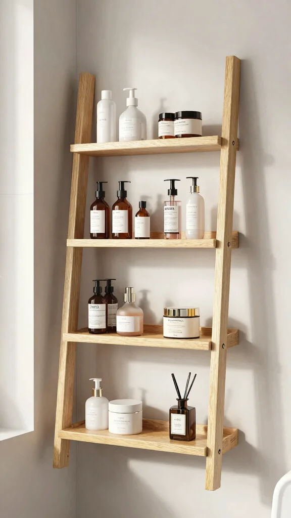 Did you know ladder ledge shelves—aka hanging bathroom shelves—can cut bathroom clutter by up to 40%? Position them beside the mirror to grab daily essentials in seconds.