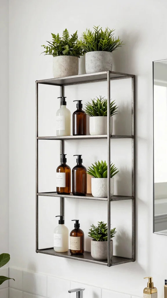 Industrial metal frames bring a modern edge to your bathroom decor. With finishes ranging from bold black to shiny metallic, these shelves offer a striking contrast, especially when paired with wood or glass. This combination allows you to display your favorite toiletries and decor items stylishly while keeping everything accessible. Their open design adds an airy feel, making your bathroom feel more spacious and organized.