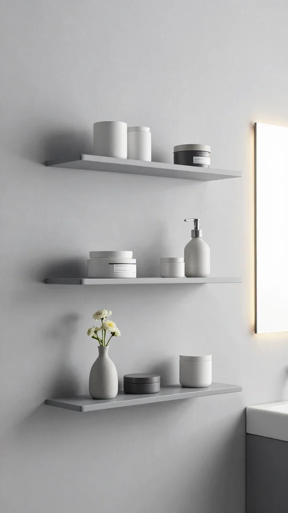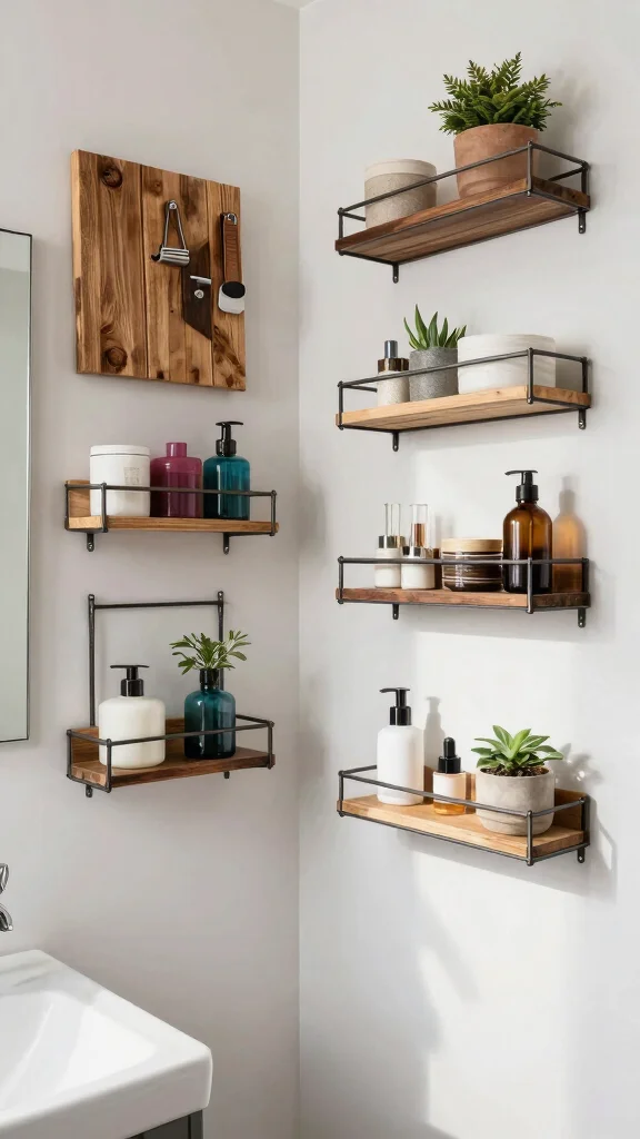 For tight bathrooms, opt for wall-mounted shelves that are shallow (about 6–8 inches deep) to avoid crowding.