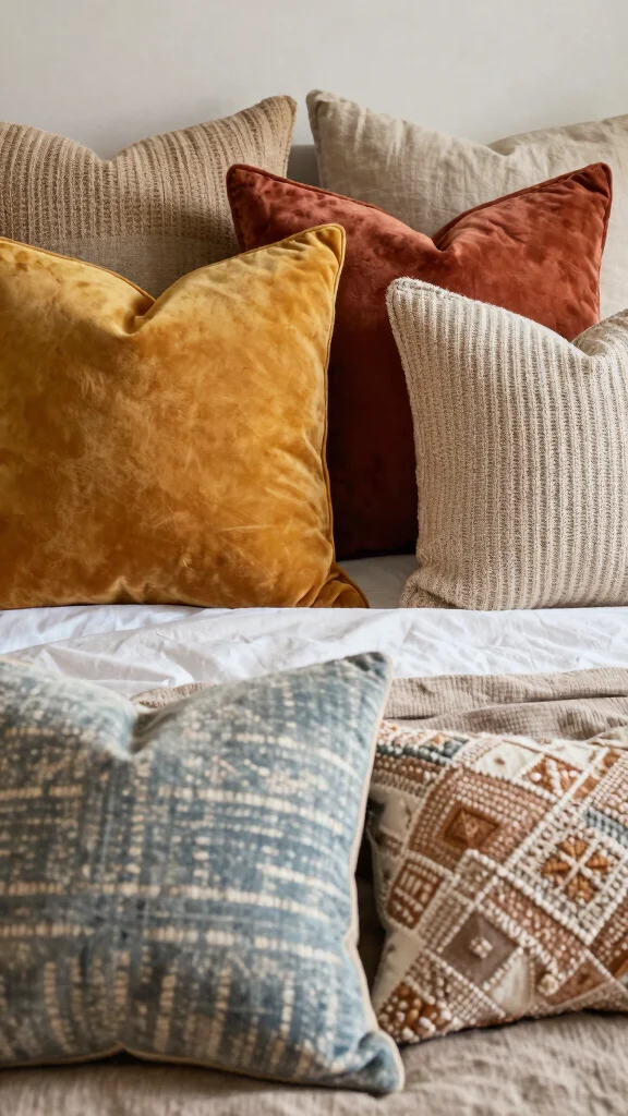 To best utilize oversized pillows, position one or two at the back of your bed, allowing smaller pillows to cascade in front. Mixing textures like velvet and knit not only adds depth but also creates a cozy environment. Combining patterns and solids can give your bed a chic bohemian vibe.