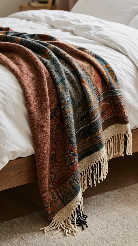 – Opt for throws with fringe or interesting patterns for added detail.