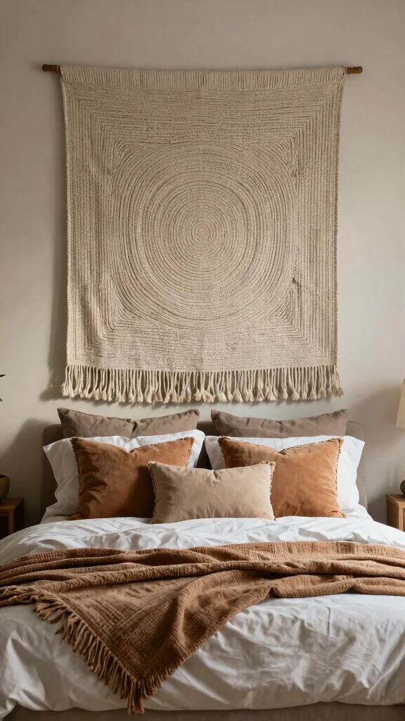 Incorporating wall hangings can introduce visual interest and depth to your bedroom decor. Tapestries, macramé, or woven art pieces create a backdrop that enhances the layered look of your pillows and throws.