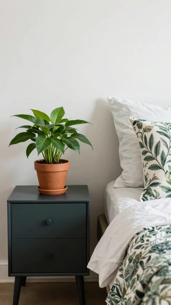 Incorporating greenery not only enhances your decor but also promotes a tranquil environment, making your bedroom a true sanctuary.