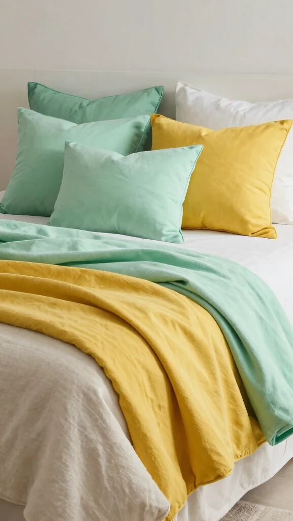 Start by selecting a base color like soft beige or cool grey, then add accent shades that complement it. Use these colors in your throw pillows and blankets to create a cohesive look. For example, a mint green blanket beautifully contrasts with mustard yellow pillows, offering striking visual appeal.