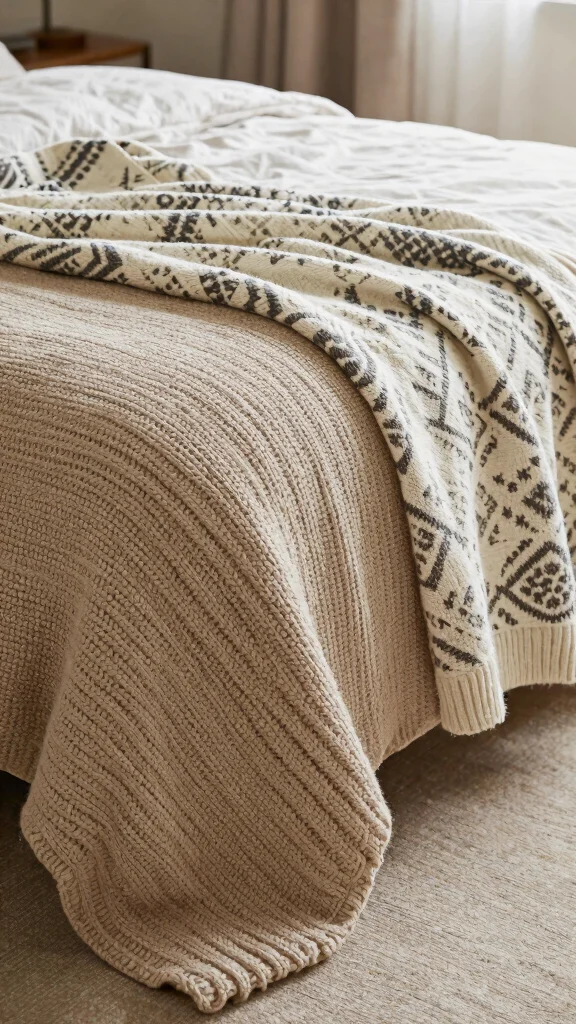 – Use wool or chunky knit blankets for warmth and coziness.