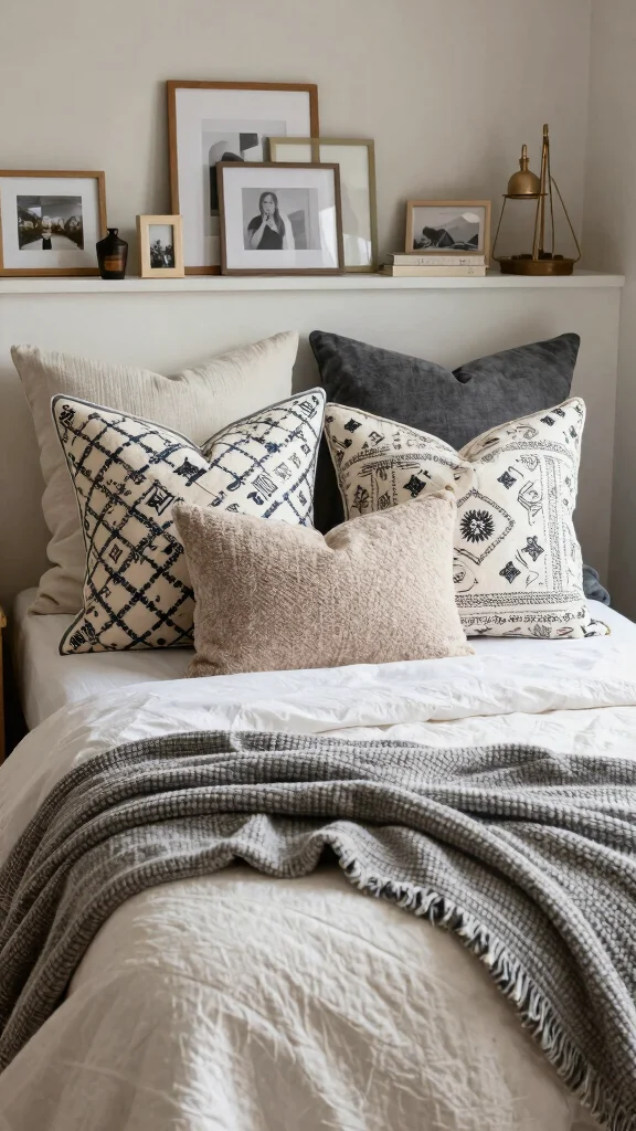 For a boho aesthetic, select pillows made from natural fibers and pair them with soft, organic cotton throws. A jute rug under the bed can unify the look, adding an extra layer of texture without overwhelming the color scheme.