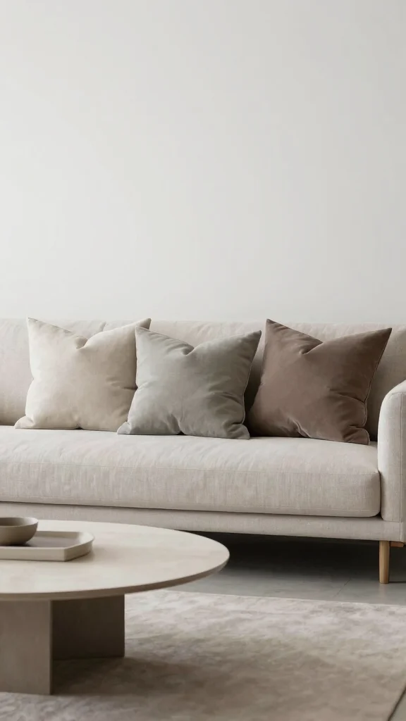 In a minimalist setting, select pillows that make a subtle impact. A few well-crafted pieces in varying sizes on a simple sofa can create a chic, uncluttered look that promotes tranquility and spaciousness.