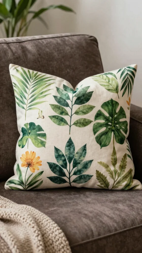 Botanical prints bring the beauty of nature indoors, making your living space feel fresh and vibrant. These pillows often showcase lush foliage and floral patterns, providing a lively contrast against a brown couch. The rich greens and earthy tones create a harmonious blend that invites warmth and tranquility into your home.