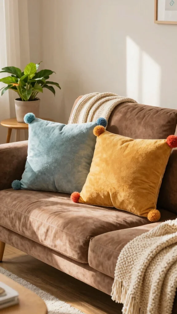 Using pom pom pillows in moderation—just one or two—can create a delightful focal point. Pairing them with solid-colored cushions keeps the aesthetic balanced and highlights the playful details.