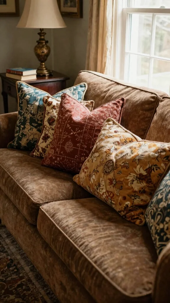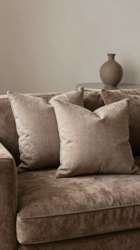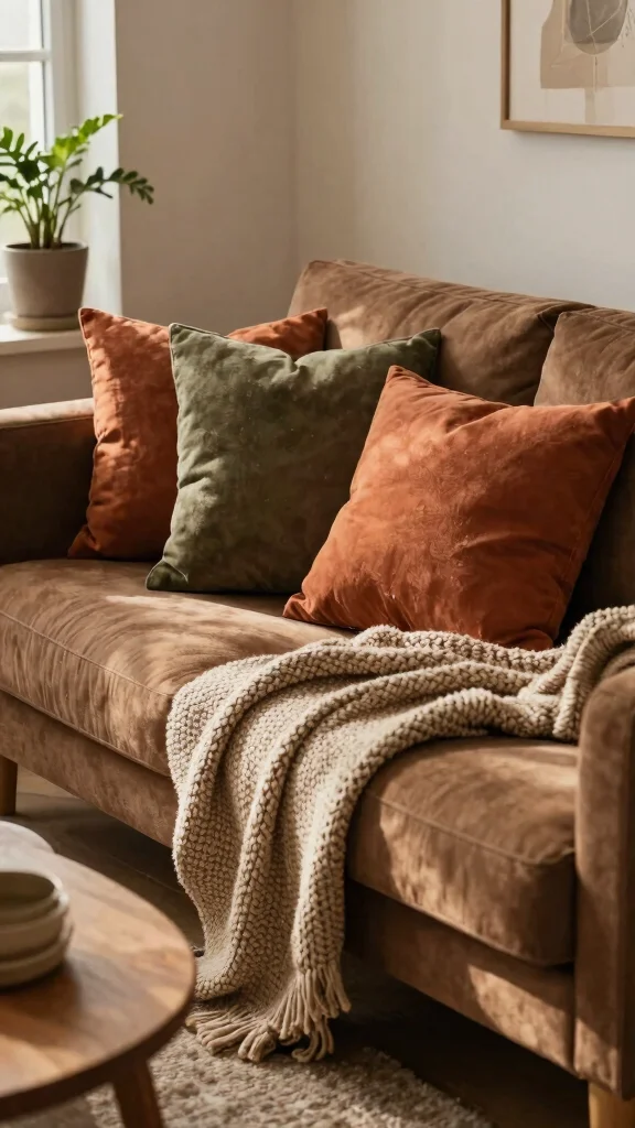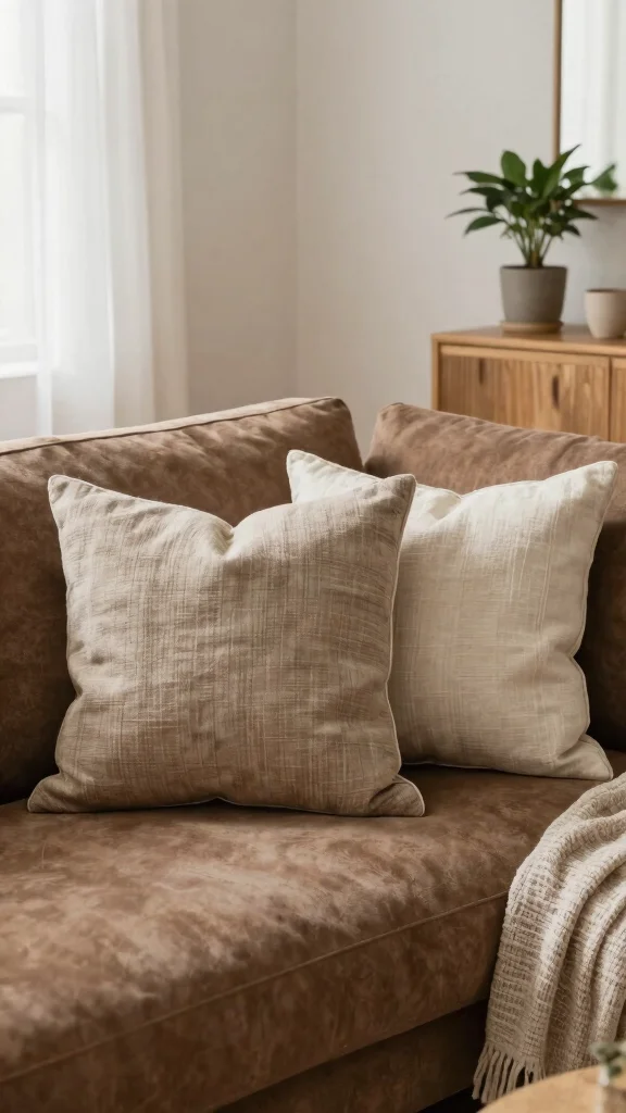 Choosing a color that complements the brown, such as warm taupe or rust, allows you to create a timeless aesthetic that can adapt to changing trends. Varying textures between pillows keeps the design interesting and engaging.