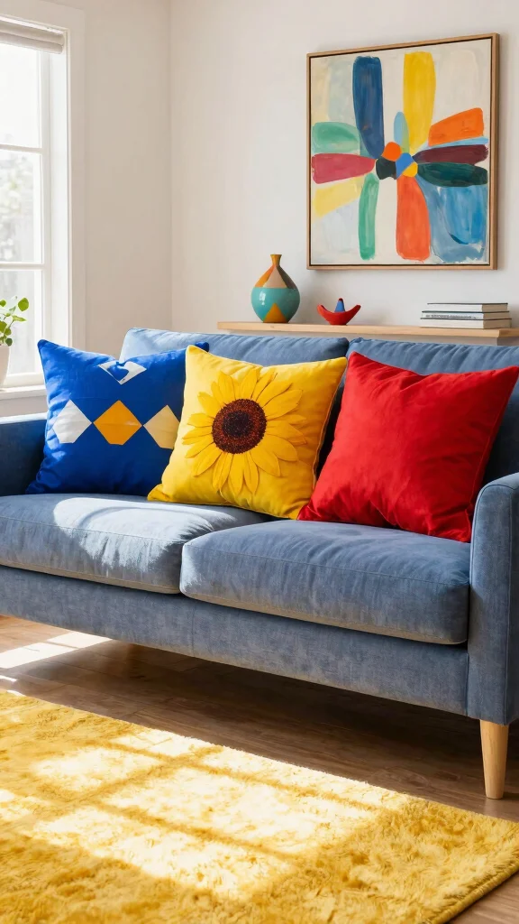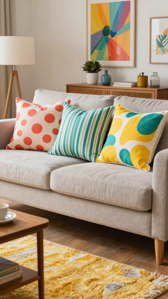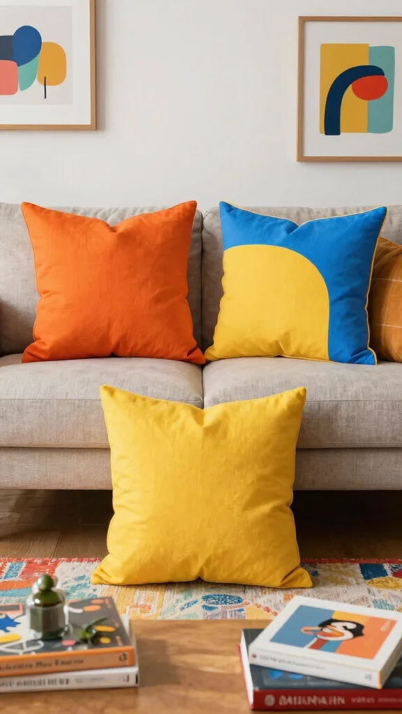 Arrange the pillows to maximize their impact, perhaps with the brightest color at the center. This approach brings a playful spirit to your living room, making it a perfect space for entertaining.
