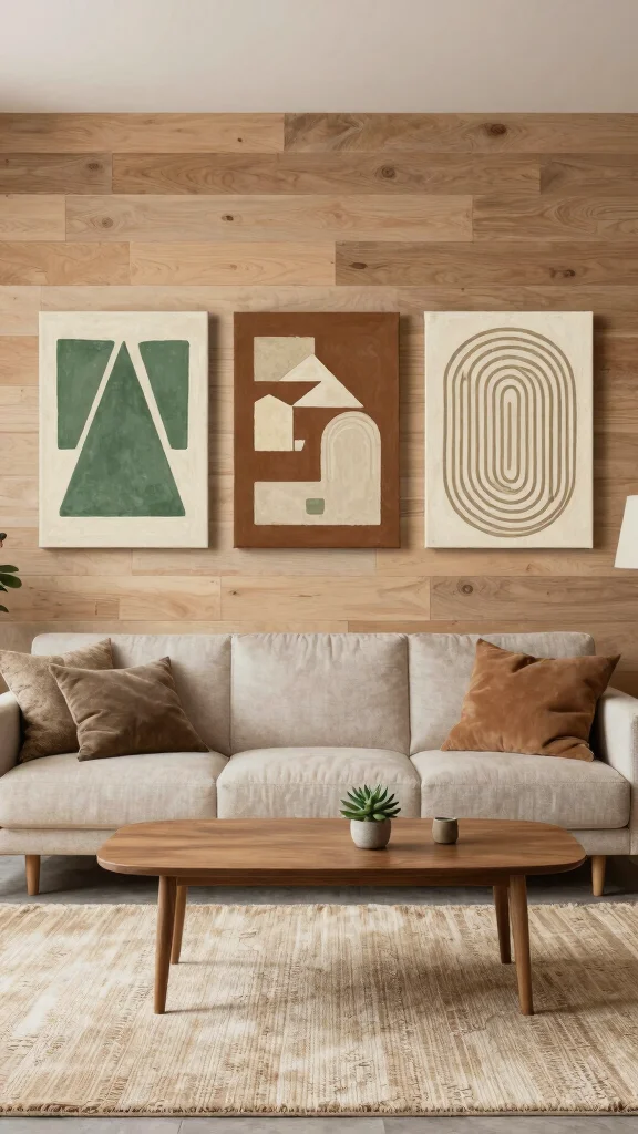Fun fact: A 3-piece geometric wall art set in earthy greens, browns, and creams can boost perceived calm by up to 25%. In practice, this wall art 3 piece trio creates harmony quickly in any living room.
