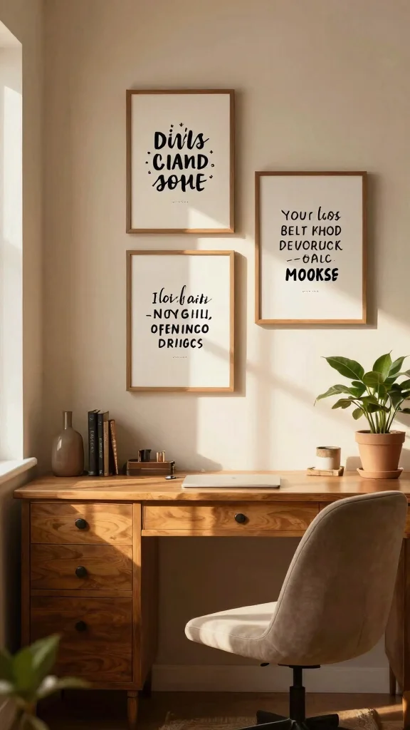 Surround yourself with positivity through uplifting quote art pieces that inspire daily motivation. A three-piece set featuring encouraging phrases can serve as a constant reminder to pursue your dreams. Ideal for home offices or bedrooms, they create an inspiring atmosphere for your daily activities.