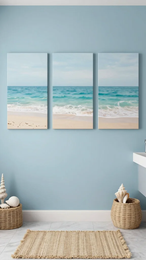 Ocean-themed art transports you to serene beaches, fostering a sense of calm. To enhance this coastal vibe, consider these tips for displaying your pieces.