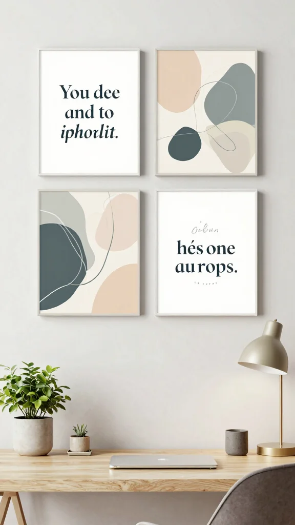 Artistic quotes can serve as both decor and inspiration, providing a meaningful focal point in your home. A four-piece arrangement that combines typography art with illustrations can uplift your space and motivate you daily.