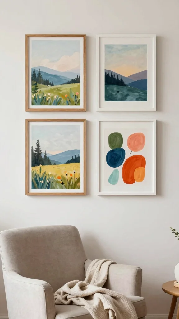 Turn your wall art 4 piece into a living mood board. Pick pieces that evoke calm or energy, mix frame styles, and group them close together for a cohesive vibe. It’s a simple, actionable approach to shape a space you’ll actually love.