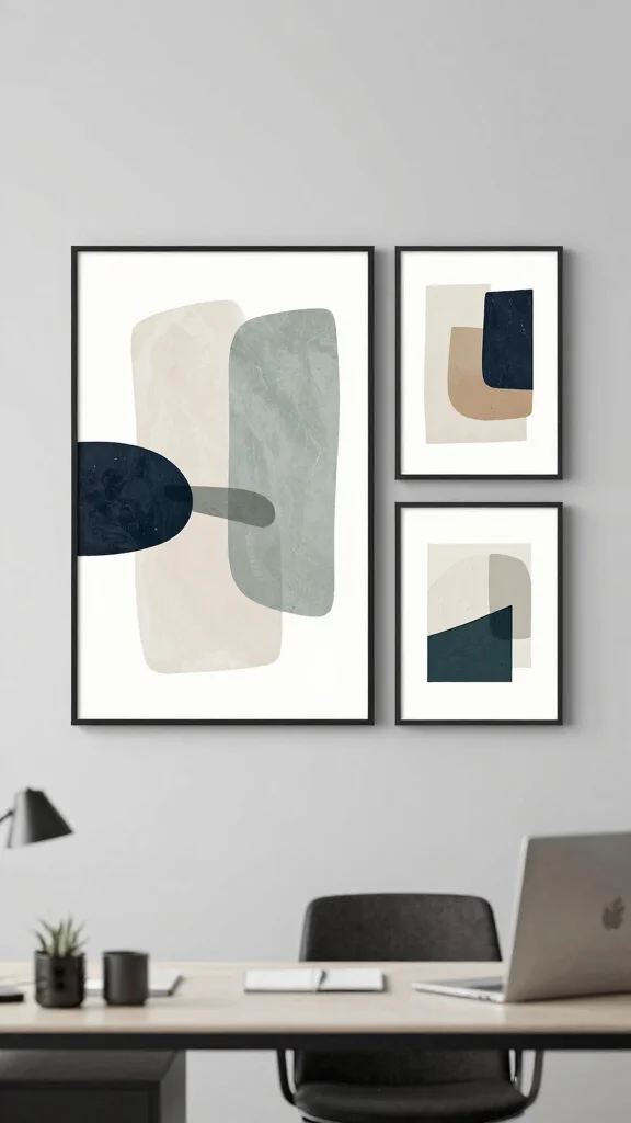 Stick to a muted, cohesive palette—neutrals like whites, creams, charcoals, and soft beiges—then add a single accent color for contrast. Geometric shapes, abstract lines, and photographic prints in black-and-white pair well with modern wall art. Match frame finishes for a calm, modern minimalist wall art vibe, and let texture (canvas, metal, wood) provide interest without clutter. For oversized wall art, keep the shapes simple and the spacing generous to let each piece breathe.