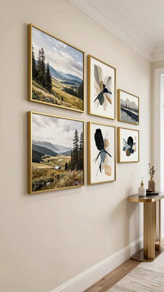 – Select art pieces that have similar colors or subjects for unity.