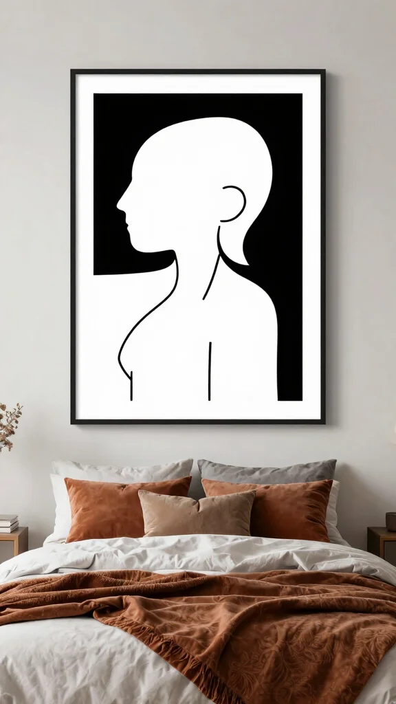 For those who appreciate simplicity, minimalist black and white art can perfectly complement a bohemian bedroom. These pieces offer a stark contrast to vibrant colors and textured elements, creating a chic focal point above your bed that maintains a calming atmosphere. Opt for line drawings, abstract shapes, or monochrome photographs to enhance the elegance of your space.