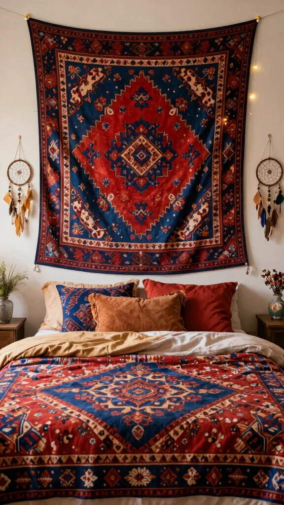 – Hang a tapestry that harmonizes with your bedding colors for a cohesive look.