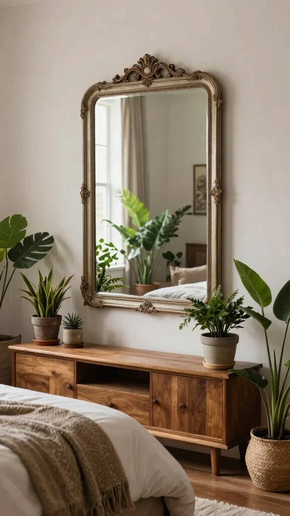 Vintage mirrors are a stunning addition to your bedroom, serving as both functional decor and captivating wall art. An ornate mirror hung above your bed can create a sense of depth and openness in the room while beautifully reflecting light. Look for mirrors with unique shapes or antique finishes to enhance your space’s character and charm.