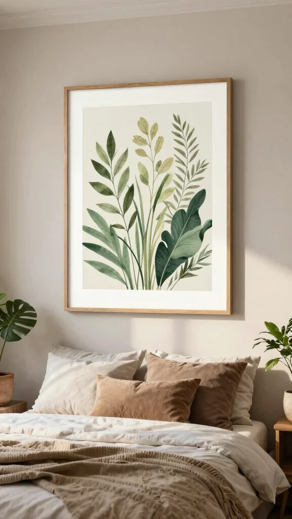 Nature-inspired artwork brings the tranquility of the outdoors into your bedroom, perfectly aligning with a bohemian aesthetic. Pieces like botanical prints or serene landscapes evoke calm and relaxation, creating a peaceful atmosphere. These artworks can be found in various styles, from soft watercolors to bold abstract interpretations, allowing you to choose what resonates with you.