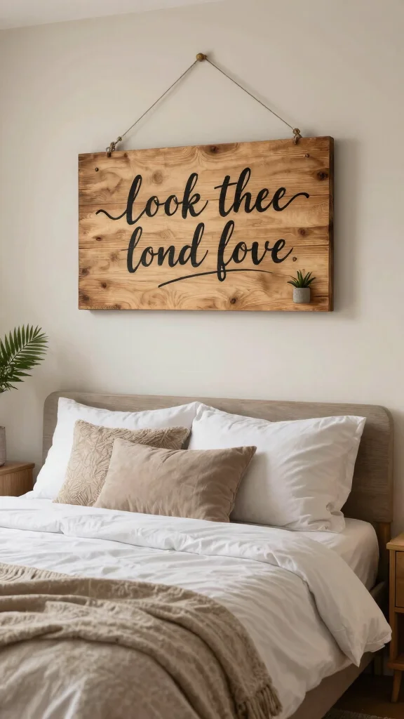 For displaying your quotes, consider mixing them with other art for a gallery feel, or opt for typography that aligns with your decor style. Framed or unframed, these signs can enhance your overall bedroom aesthetic.