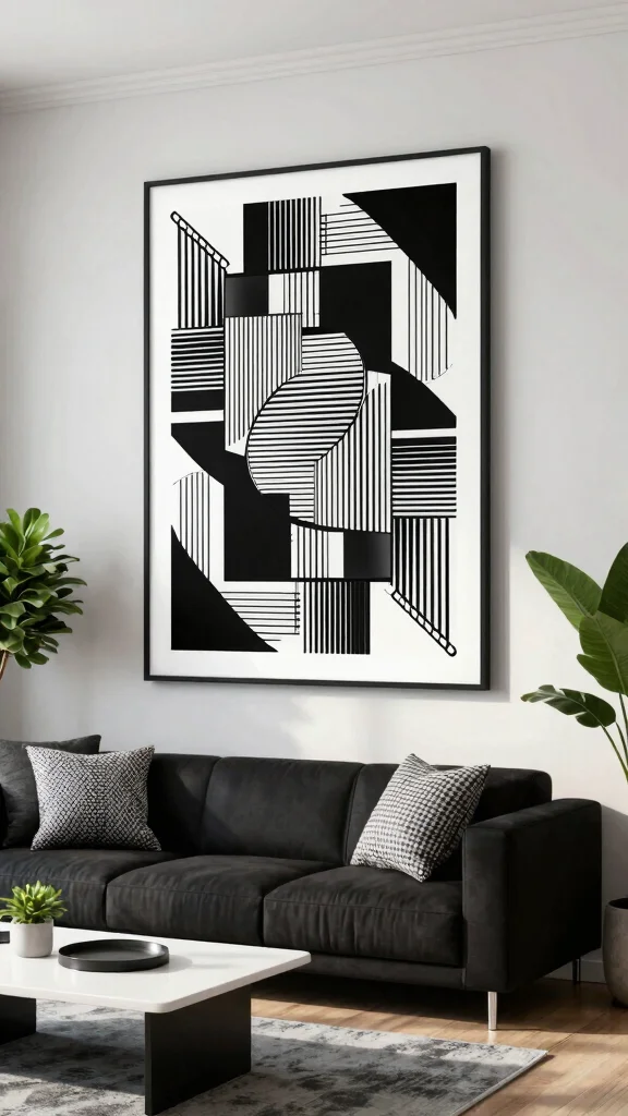 Wall art black and white lets a room breathe—no loud colors, just honest mood. Abstract monochrome pieces invite personal interpretation, so you can switch energy from bold to calm with a single frame. Start by pairing one large piece with a few smaller studies to create a balanced gallery.