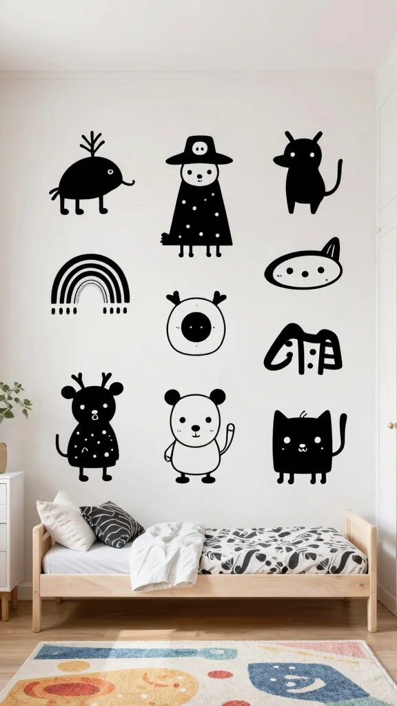 Wall decals provide a fun, versatile way to incorporate black and white art into your decor without permanent commitment. These adhesive designs range from simple shapes to intricate patterns, perfect for any space.