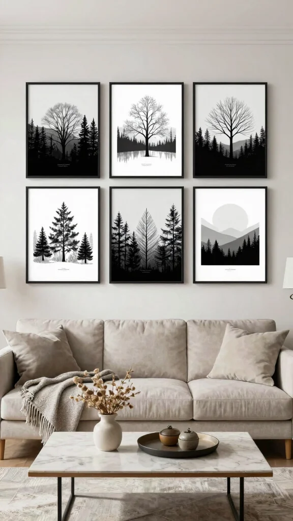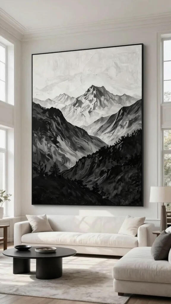 Monochrome landscapes work best in larger formats, allowing viewers to immerse themselves in the scene. A gallery wall of abstract landscapes can create a soothing atmosphere, especially in living rooms or bedrooms.