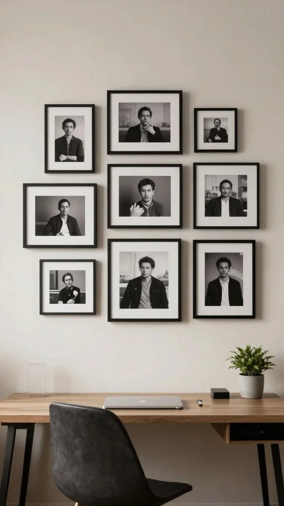 Group smaller photos of varying sizes for an engaging display or feature a single large piece as a dramatic focal point. Consider matte black frames for a contemporary vibe or rustic wood for a homey feel, making your wall a true reflection of your aesthetic.