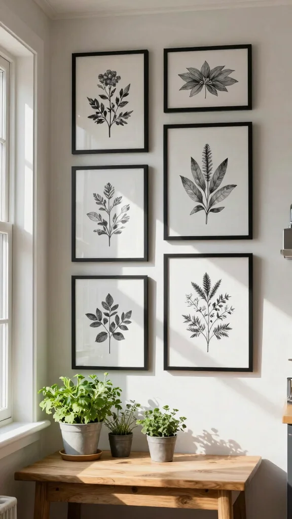 Framing these prints simply allows the artwork to speak for itself, adding sophistication without overwhelming the area. Try displaying a series of botanical prints together for a unified look.