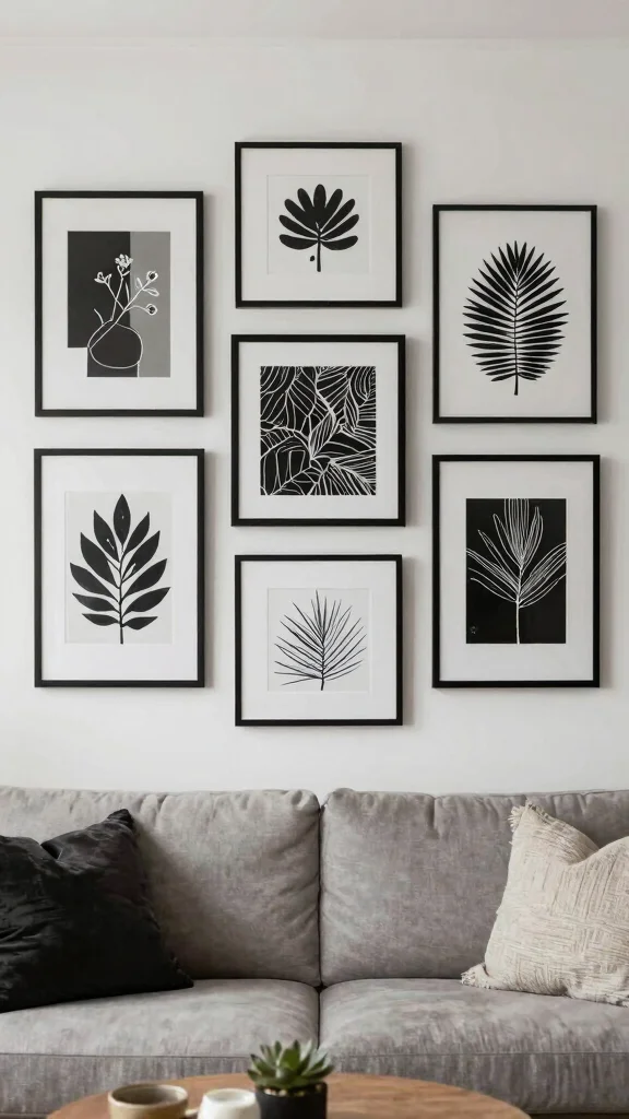 Framing and hanging are where the magic happens. Frame choice can make or break the look. Opt for acid-free mats and UV-protective glass to preserve your black and white prints. Choose slim frames in black or white to maintain a clean, minimalist wall designs vibe. Use a level, map anchors with painter’s tape, and hang at eye level (roughly 57–60 inches). If you’re creating a gallery wall, keep even spacing (2–4 inches) or go bold with a single large piece for a strong contemporary statement.