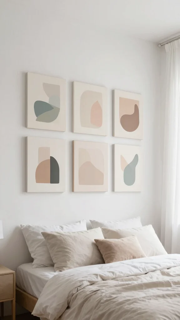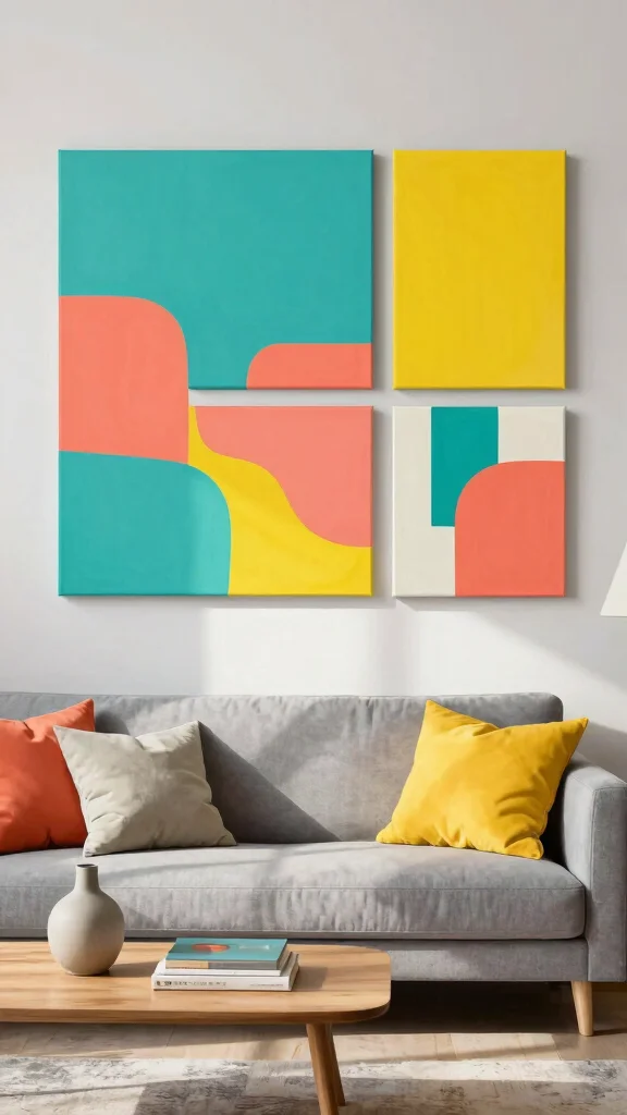 Opt for geometric designs with clean lines and a limited color palette that establishes a peaceful atmosphere. This style enhances space and calm, making it perfect for relaxation areas like bedrooms or reading corners. Keep the number of pieces minimal—just one or two impactful canvases can make a significant statement.