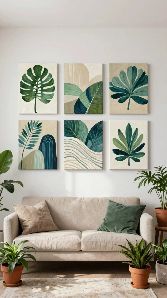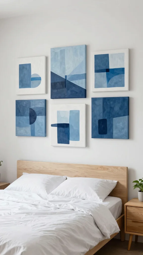 This style fosters a serene and cohesive atmosphere, especially when using various tones and textures that create depth. A collection of canvases in different shades of blue can evoke a calming ocean vibe, making it ideal for bedrooms or relaxation areas. Arrange them in a grid for a structured look or stagger them for a more casual feel.
