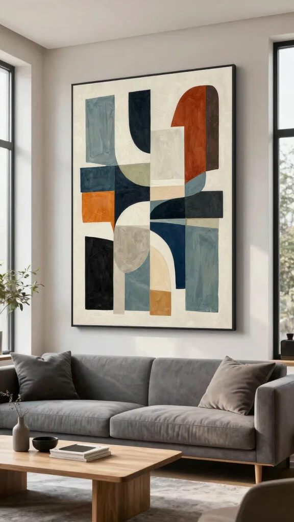 Large geometric art pieces can transform a simple wall into a captivating visual experience, acting as a focal point that draws admiration. Use one bold canvas for a minimalist vibe, or opt for a triptych of two or three pieces to create a stunning ensemble above a sofa or bed.