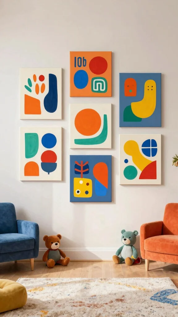 Introduce a sense of whimsy to your gallery wall with playful geometric patterns that radiate fun and creativity.