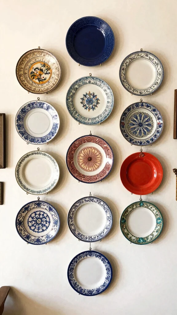 Arrange the plates in an attractive pattern on your wall, using plate hangers or adhesive strips for secure mounting. This eye-catching display not only serves as decor but also sparks conversations about the stories behind each piece.