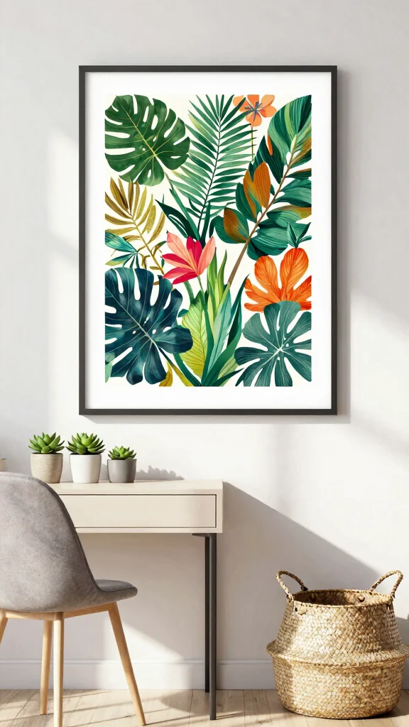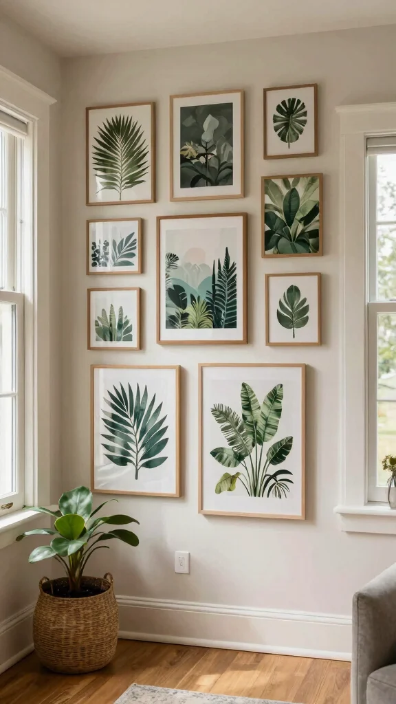 Pro Tip: Mix and match different styles and textures for a unique display. You can combine nature photography prints with abstract botanical illustrations to create an engaging gallery wall. This eclectic approach can make your space feel more lively and inviting.