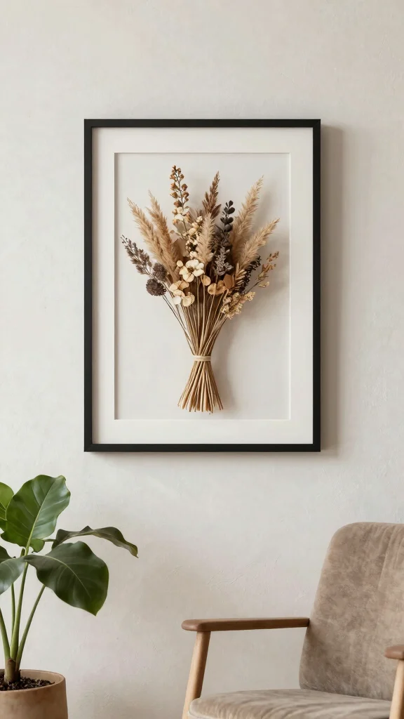 Dried flower arrangements prove that small spaces sparkle with texture. Create a framed display, mix colors for contrast, and use a shadow box to add depth—your wall art nature becomes warm, affordable, and uniquely yours.