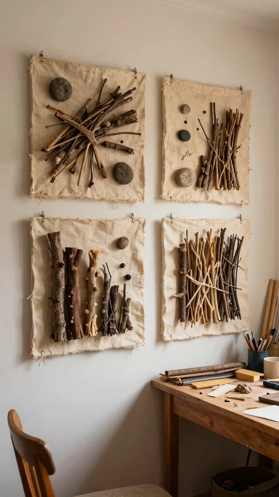 Create unique wall art using natural materials for an earthy, organic touch. This can include twigs, stones, or leaves arranged in a creative way. Here’s how to craft this type of art: